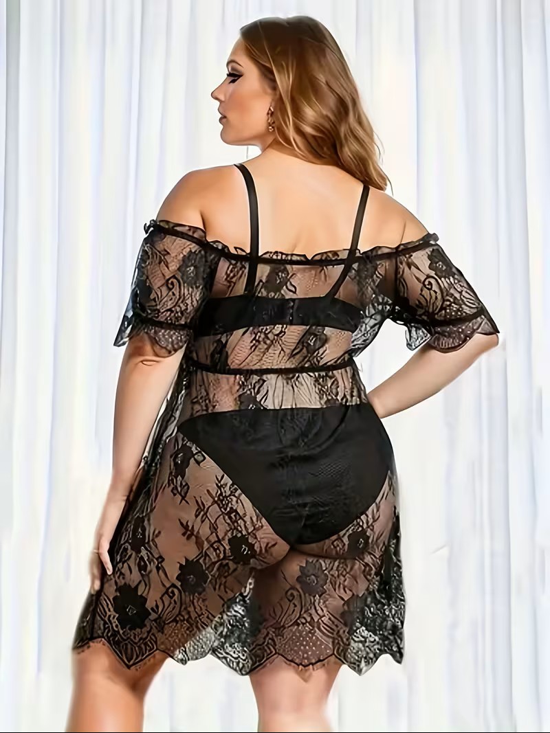 Verleidelijk, elegant en onweerstaanbaar vrouwelijk – deze sexy plus size kanten jurk is ontworpen om jouw rondingen perfect te laten uitkomen. Het verfijnde uitgesneden design onthult precies genoeg om de fantasie te prikkelen, terwijl de luxe niet-rekbare stof zorgt voor een stijlvolle en sensuele uitstraling.
